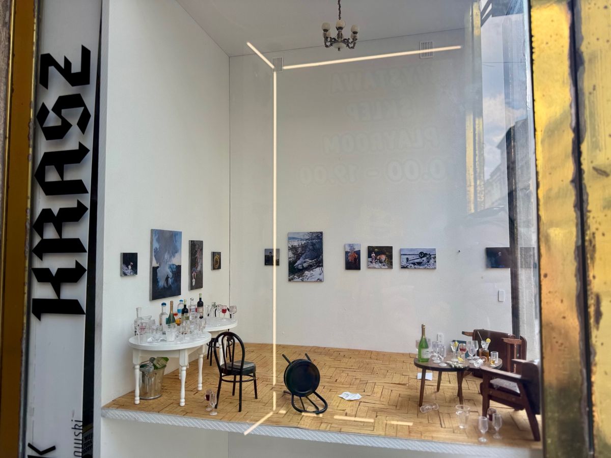 Wystawa Karola Palczaka Krasz łączy zauroczenie z brutalnością zderzenia – w świecie, gdzie poimprezowa cisza wciąż drży od niewypowiedzianych napięć. Tytuł spolszcza dwa angielskie słowa: crush (zauroczenie drugą osobą) i crash (katastrofa, wypadek), co otwiera wielowymiarową opowieść o męskich relacjach, impulsach i emocjonalnych zwarciach.