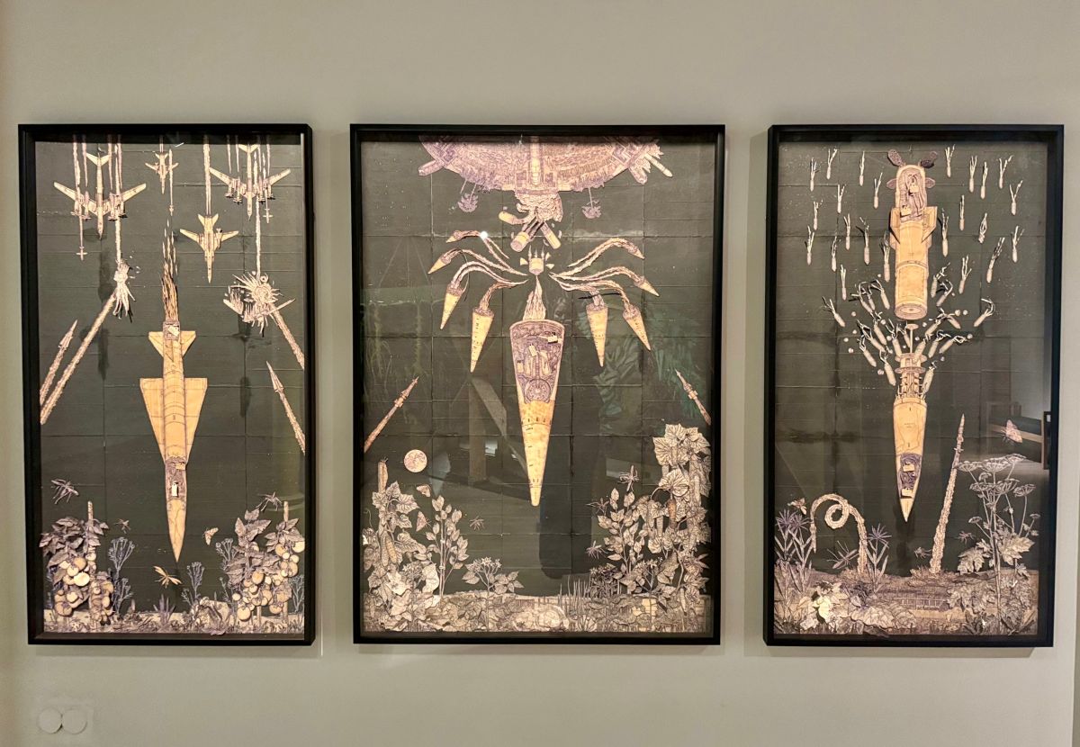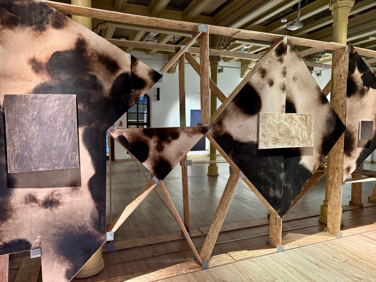 Ważnym elementem wystawy jest mapa Ukrainy. Dzięki niej widzowie i widzki poznają tereny zagrabione lub odzyskane, miejsca, z których twórczynie i twórcy czerpią inspiracje i do których odwołują się w swoich pracach. Narrację o zniszczeniu i odrodzeniu wzmacnia zastosowanie w architekturze wystawy techniki opalania drewna, służącej jego konserwacji. W ten sposób motyw palenia ukazany jest nie tylko jako siła niszczycielska, ale i metoda hartowania ekosystemów.